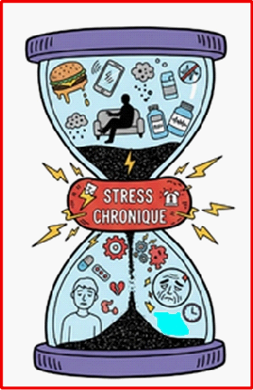 Le stress chronique s’impose comme un facteur déterminant, agissant tel un mécanisme central qui transforme les agressions quotidiennes en pathologies systémiques. Il maintient l’organisme dans un état d’alerte permanent, le fameux mode « combat ou fuite ». Pour en saisir toute la complexité, nous recourons à la MÉTAPHORE DU SABLIER :